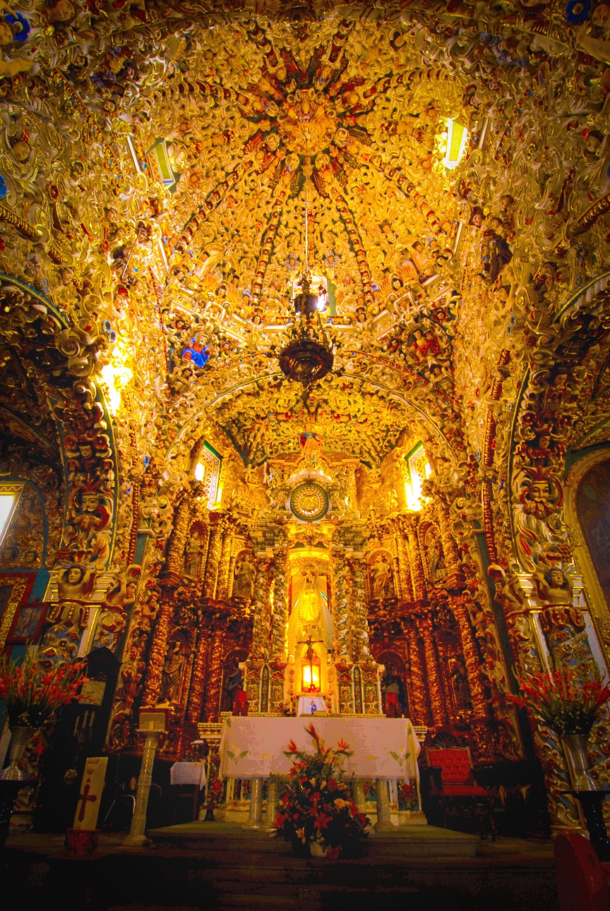 Illustration : vue intérieure de l'église de Santa Maria Tonantzintla au Mexique. Décorée dans un style dit "baroque populaire" ou "baroque indigène", elle présente une profusion de représentations de jeunes enfants. Or, les Psilocybe mexicana sont couramment appelés "niños" (les enfants) en espagnol et, "par-delà les frontières linguistiques, dans toute la Méso-Amérique, les champignons sacrés sont appelés 'petits enfants' par des noms qui sont toujours à la fois affectueux et respectueux". Maria Sabina disait "je vois les champignons comme des enfants". "Tous ces enfants de Santa Maria Tonantzintla, qui sont-ils ? Qui d'autre que les 'enfants' des chants de Maria Sabina ?" "Qui sont ces enfants sinon les a-pipil-tz-in, les 'petits enfants des eaux' [P. mexicana] de Marina Rosas, chamane de lignée aztèque, qui vit sur les pentes de Popocatepetl, à une journée de marche de Tonantzintla ?" s'interrogeait l'ethnomycologue R. G. Wasson à propos de cette église du Mexique central. cf. Wasson R. Gordon, The wondrous mushroom : mycolatry in Mesoamerica, New York, McGraw-Hill. (coll. « Ethno-mycological studies »), 1980, XXV - 247 p.