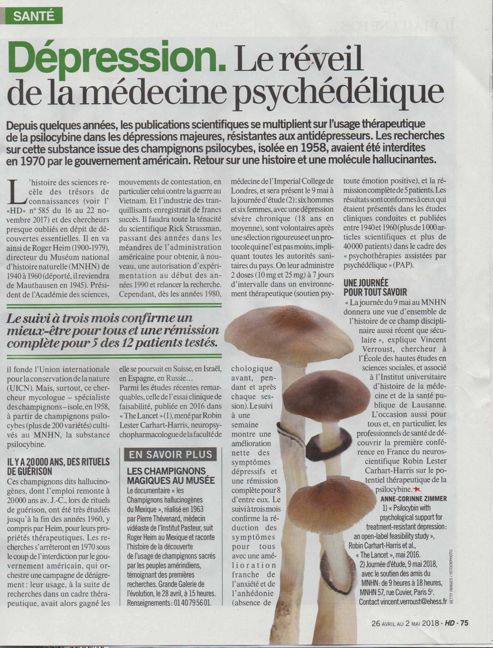 - L'Humanité Dimanche : "Dépression - Le réveil de la médecine psychédélique"